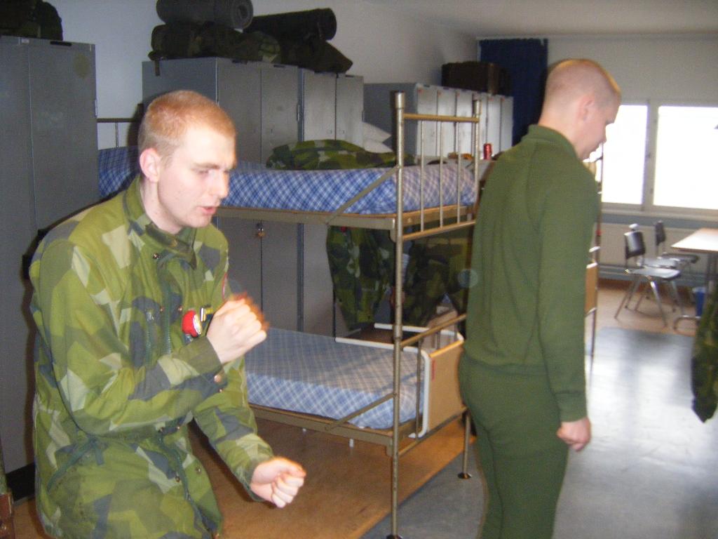 "Hade du inte sagt det nu hade ingen i hela plutonen sett det... förutom Müller, men han har ju inrättning i hjärnan."-Eriksson, Je. till Hjalmarsson, E. när Hjalmarsson påpekar att han inte sytt fast sin namntag där han kanske borde...